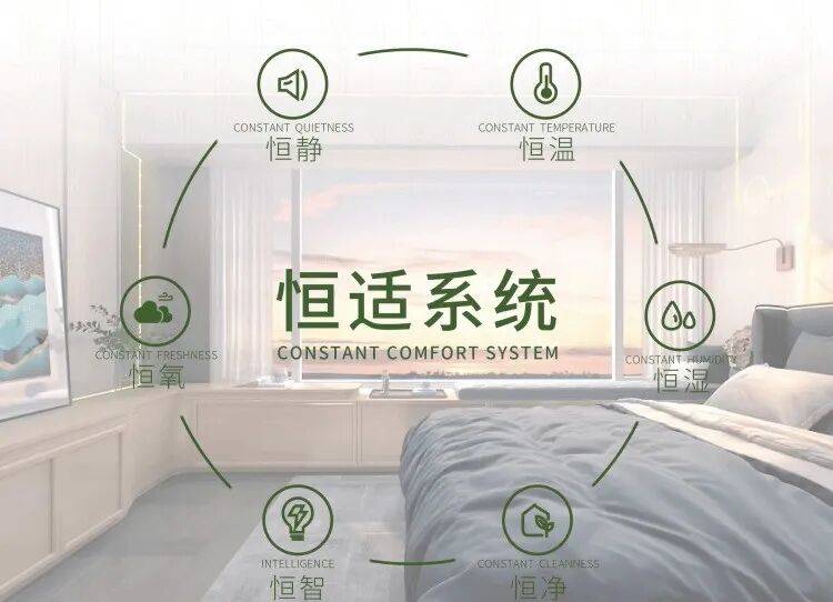 作为广州首个恒适系统科技健康豪宅,引入恒适系统,打造恒温、恒湿、恒静、恒净、恒氧、恒智的健康新生态。